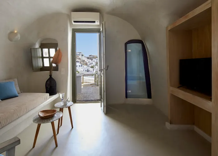 El hotel Rhenia'S Suites Oia, de 4 estrellas, situado en el barrio Oia Caldera de Oia, se encuentra a 500 m de atractivos culturales como Maritime Museum.